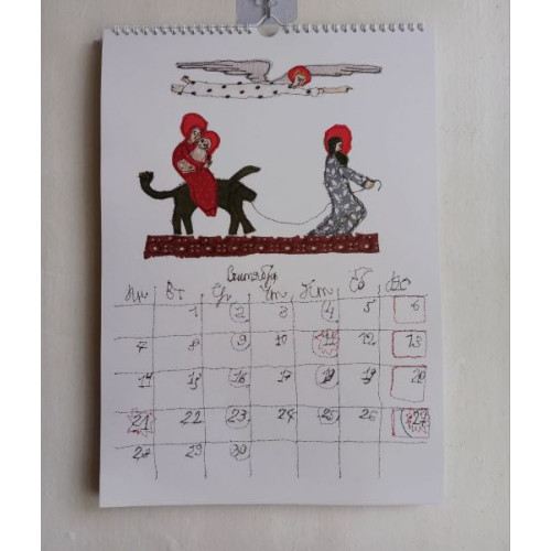 Иллюстрации календаря - это фотографии вышитых рисунков автора.